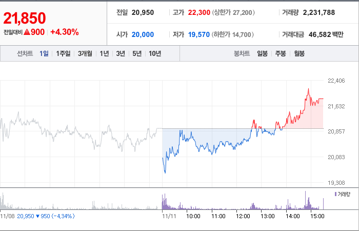 현재 네이처셀의 주가는 20,950원으로, 전일 대비 950원이 하락한 상태입니다. 주주 현황을 살펴보면, 바이오스타그룹과 그 외 9명이 총 19.89%의 지분을 보유하고 있습니다. 네이처셀은 바이오 기업으로, 현재 주가는 20,950원입니다. 이 회사의 시가총액은 1조 4,062억 원이며, 총 발행 주식 수는 64,357,156주입니다. 외국인의 보유 비율은 8.94%로 나타났고, 장중 거래량은 2,044,989주에 달했습니다. 또한, 네이처셀의 매출액은 188억 원에 이르고 있습니다.