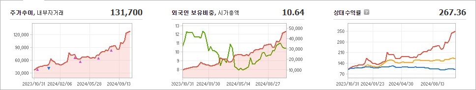 리가켐바이오의 현재 주가는 131,700원으로, 전일 대비 변동이 없는 상태입니다. 주주 현황을 살펴보면 팬 오리온 코프. 리미티드와 그 외 9명이 총 29.63%의 지분을 보유하고 있습니다. 이 회사는 의료 장비 및 서비스 분야에 속하며, 장중 기준 주가는 131,700원입니다. 리가켐바이오의 시가 총액은 4조 7,154억 원이며, 발행된 주식 수는 36,610,338주에 달합니다. 외국인 보유 비중은 10.64%로, 장중 거래량은 606,264주를 기록했습니다. 또한, 매출액은 618억 원에 이릅니다.