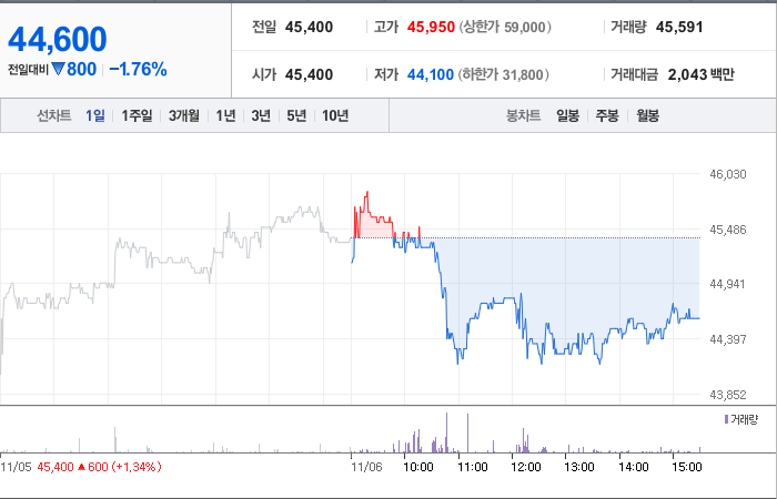 메가스터디교육의 현재 주가는 45,400원으로, 전일 대비 2.68원 하락했습니다. 주주 현황을 살펴보면 손주은과 다른 14명이 총 37.39%의 지분을 보유하고 있습니다. 이 교육 기업의 시가총액은 5,112억 원이며, 발행 주식 수는 11,461,955주입니다. 외국인 투자자의 보유 비율은 27.01%이며, 장중 거래량은 17,548주에 달했습니다. 메가스터디교육의 매출액은 4,638억 원에 이릅니다.