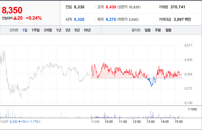 비올의 현재 주가는 8,330원으로, 전일 대비 150원 하락했습니다. 비올의 주주 현황을 보면, 디엠에스와 다른 4인이 총 36.72%의 지분을 보유하고 있습니다. 비올은 의료 장비 및 서비스 분야의 기업으로, 장중 주가는 8,330원입니다. 비올의 시가총액은 4,878억 원이며, 총 발행 주식 수는 58,419,125주입니다. 외국인 보유 비중은 2.83%이며, 장중 거래량은 413,149주에 달했습니다. 또한, 비올의 매출액은 265억 원에 이릅니다.