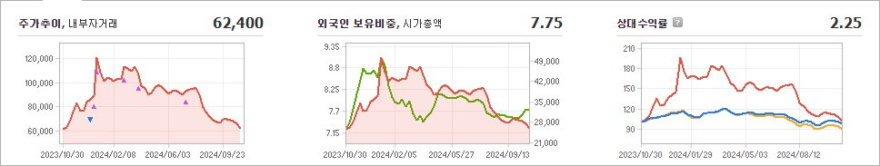 현재 셀트리온제약의 주가는 62,400원으로, 전일 대비 10.47원 하락했습니다. 주주 현황을 살펴보면, 셀트리온과 그 외 13명이 총 54.95%의 지분을 보유하고 있습니다. 셀트리온제약은 제약 회사로, 현재 주가는 62,400원입니다. 이 회사의 시가총액은 2조 6,167억 원이며, 발행 주식 수는 41,600,387주입니다. 외국인 보유 비율은 7.75%이며, 장중 거래량은 60,009주에 달했습니다. 또한, 셀트리온제약의 매출액은 2,141억 원에 이릅니다.