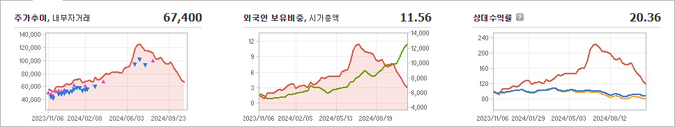 씨앤씨인터내셔널의 현재 주가는 67,400원으로, 전일 대비 23.41원이 하락했습니다. 주주 현황을 살펴보면 배은철 씨와 다른 두 명이 총 66.03%의 지분을 보유하고 있습니다. 씨앤씨인터내셔널은 개인 생활용품을 전문으로 하는 기업으로, 현재 주가는 67,400원입니다. 이 회사의 시가 총액은 6,409억 원이며, 발행된 주식 수는 10,013,941주입니다. 외국인 투자자들의 보유 비율은 11.56%이며, 장중 거래량은 94,595주에 달했습니다. 최근 매출액은 1,525억 원에 이릅니다.