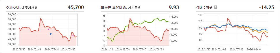 현재 에코프로에이치엔의 주가는 45,700원으로, 전일 대비 1,150원이 하락했습니다. 주주 현황을 살펴보면, 에코프로와 그 외 9인이 총 29.87%의 지분을 보유하고 있습니다. 에코프로에이치엔은 상업 서비스 분야의 기업으로, 현재 주가는 45,700원입니다. 이 회사의 시가 총액은 7,255억 원이며, 발행된 주식 수는 15,304,932주입니다. 외국인 보유 비율은 9.93%로, 장중 거래량은 52,112주에 달했습니다. 또한, 매출액은 983억 원을 기록했습니다.