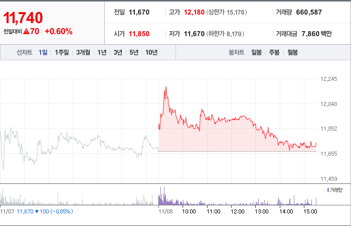 현재 와이씨의 주가는 11,670원으로, 전날에 비해 100원이 하락했습니다. 주주 현황을 보면 샘텍과 다른 9명이 총 51.96%의 지분을 보유하고 있습니다. 와이씨는 반도체 및 관련 장비를 전문으로 하는 기업으로, 현재 주가는 11,670원입니다. 이 회사의 시가 총액은 9,632억 원이며, 총 발행 주식 수는 82,045,350주입니다. 외국인의 보유 비중은 0.09%이며, 장중 거래량은 726,166주에 달했습니다. 또한, 와이씨의 매출액은 990억 원에 이릅니다.