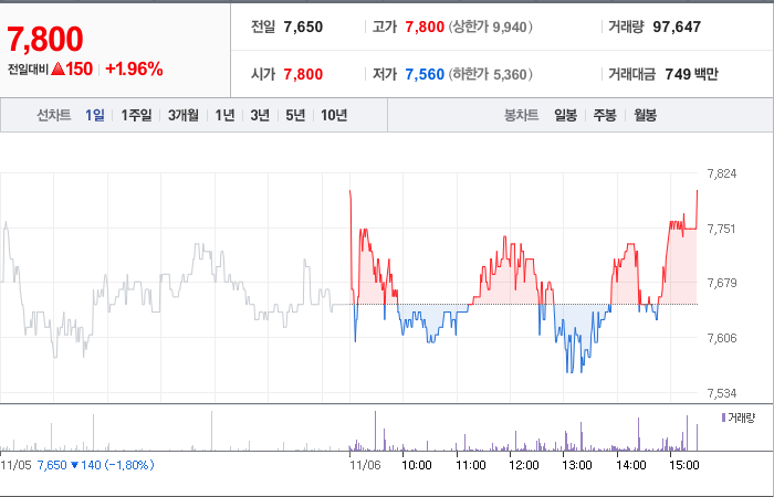 현재 케이엠더블유의 주가는 7,650원으로, 전날에 비해 140원이 하락했습니다. 주주 현황을 보면 김덕용(외 1인)이 33.22%의 지분을 보유하고 있습니다. 케이엠더블유는 통신장비 분야에 속하는 기업이며, 현재 주가는 7,650원입니다. 이 회사의 시가 총액은 3,106억 원이며, 총 발행 주식 수는 39,820,883주입니다. 외국인이 보유한 지분은 5.52%이며, 장중 거래량은 42,315주에 달했습니다. 이 회사의 매출액은 374억 원에 이릅니다.