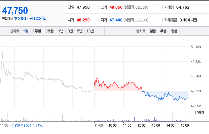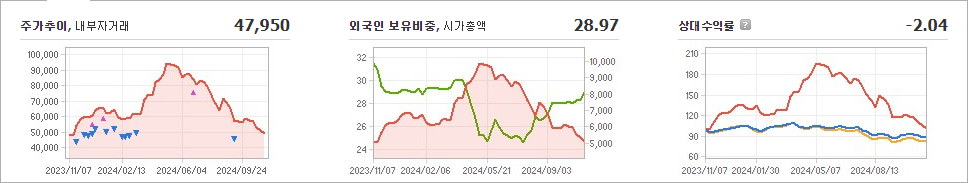 현재 코미코의 주가는 47,950원으로, 전일 대비 900원이 하락했습니다. 주주 현황을 살펴보면, 이 회사의 지분을 41.10% 보유하고 있습니다. 코미코는 반도체와 관련된 장비를 제조하는 기업으로, 현재 주가는 47,950원입니다. 코미코의 시가총액은 4,995억 원이며, 발행된 주식 수는 10,460,684주입니다. 외국인 투자자의 보유 비중은 28.97%이며, 장중 거래량은 76,654주에 달했습니다. 이 회사의 매출액은 2,516억 원에 이릅니다.