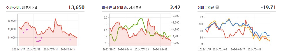 현재 콜마비앤에이치의 주가는 13,650원으로, 전일 대비 100원이 하락한 상태입니다. 주주 현황을 살펴보면 한국콜마홀딩스와 그 외 5인이 총 53.38%의 지분을 보유하고 있습니다. 콜마비앤에이치는 식품 관련 기업으로, 현재 주가는 13,650원입니다. 이 회사의 시가총액은 3,874억 원이며, 발행된 주식 수는 29,415,558주입니다. 외국인 보유 비율은 2.42%이고, 장중 거래량은 58,027주에 달했습니다. 또한, 콜마비앤에이치의 매출액은 3,261억 원에 이릅니다.