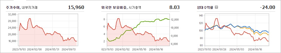 현재 포스코엠텍의 주가는 15,960원으로, 전일 대비 140원이 하락한 상태입니다. 주주 현황을 살펴보면 포스코와 또 다른 개인이 총 50.65%의 지분을 보유하고 있습니다. 포스코엠텍은 금속 및 광물 관련 기업으로, 현재 주가는 15,960원입니다. 이 회사의 시가총액은 6,646억 원이며, 총 발행 주식 수는 41,642,703주입니다. 외국인의 보유 비율은 8.03%이며, 장중 거래량은 77,232주에 달했습니다. 포스코엠텍의 매출액은 1,627억 원에 이릅니다.